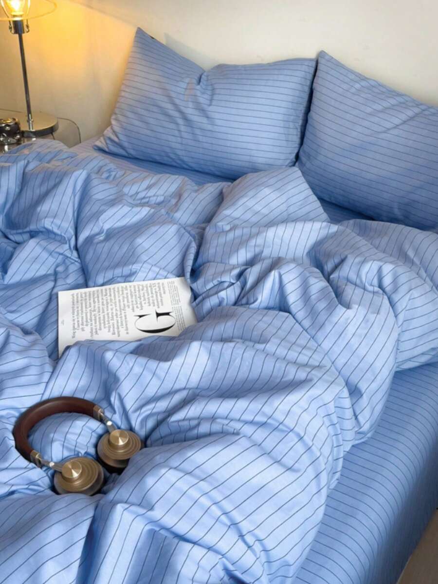 3pcs Nordic Style Striped Bedding Set, 2 Pillowcases + 1 Duvet Cover