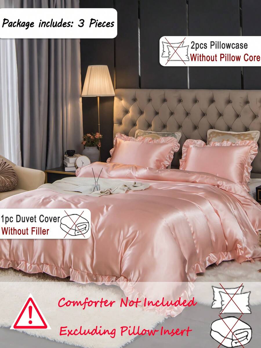 3pcs Satin Solid Bedding Set - Duvet Cover And 2 Pillowcases, Silky Polyester Fabric, Breathable And Durable, Satin Bedding, Luxurious Feel, Minimalist Elegant