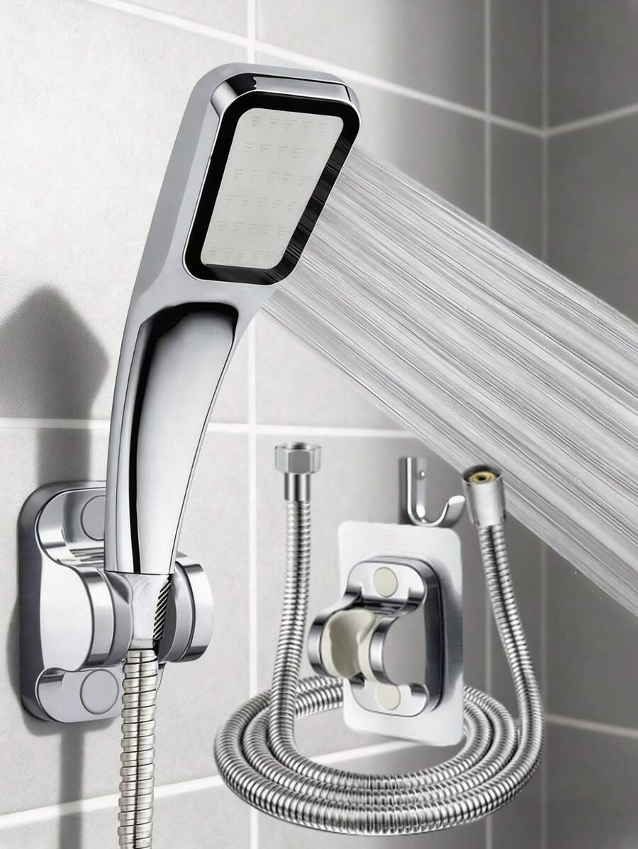 3pcs/Set 300-Hole High Pressure Square Shower Head Set, High Flow Rate Water-Saving Handheld Shower Head With 300 Nozzles, High Quality High Pressure Water-Saving Shower Head, Plastic Structure, Modern Minimalist Style, With 59-Inch Flexible Hose And Easy-Install Bracket, Suitable For Home And Hotel Bathrooms, Essential Accessory For Modern Bathrooms And RV Bathrooms, Upgrade Your Bathroom For A Comfortable Bathing Experience, Ideal Christmas Gift Bathroom Accessories Bathroom Tools
