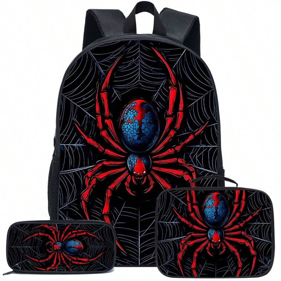 3pcs/Set Boys' Backpack, 16.5 Inch School Bag With Handbag And Pencil Case, Suitable For Elementary, Middle And High School Students