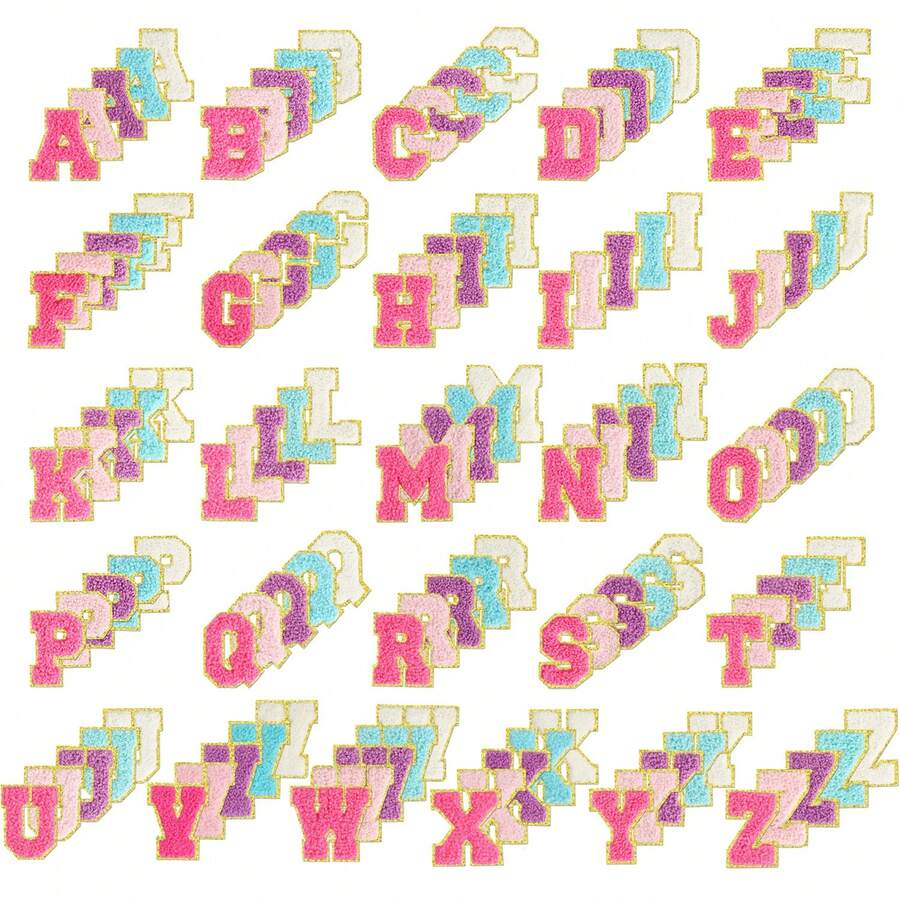 4/5/10/26pcs A-Z English Letter Chenille 2.28inch Iron On Sew On Patches Appliques For Clothes, Jackets, Hats, Books, Backpacks - Team Alphabet Self-Adhesive DIY Embroidered Fabric Stickers