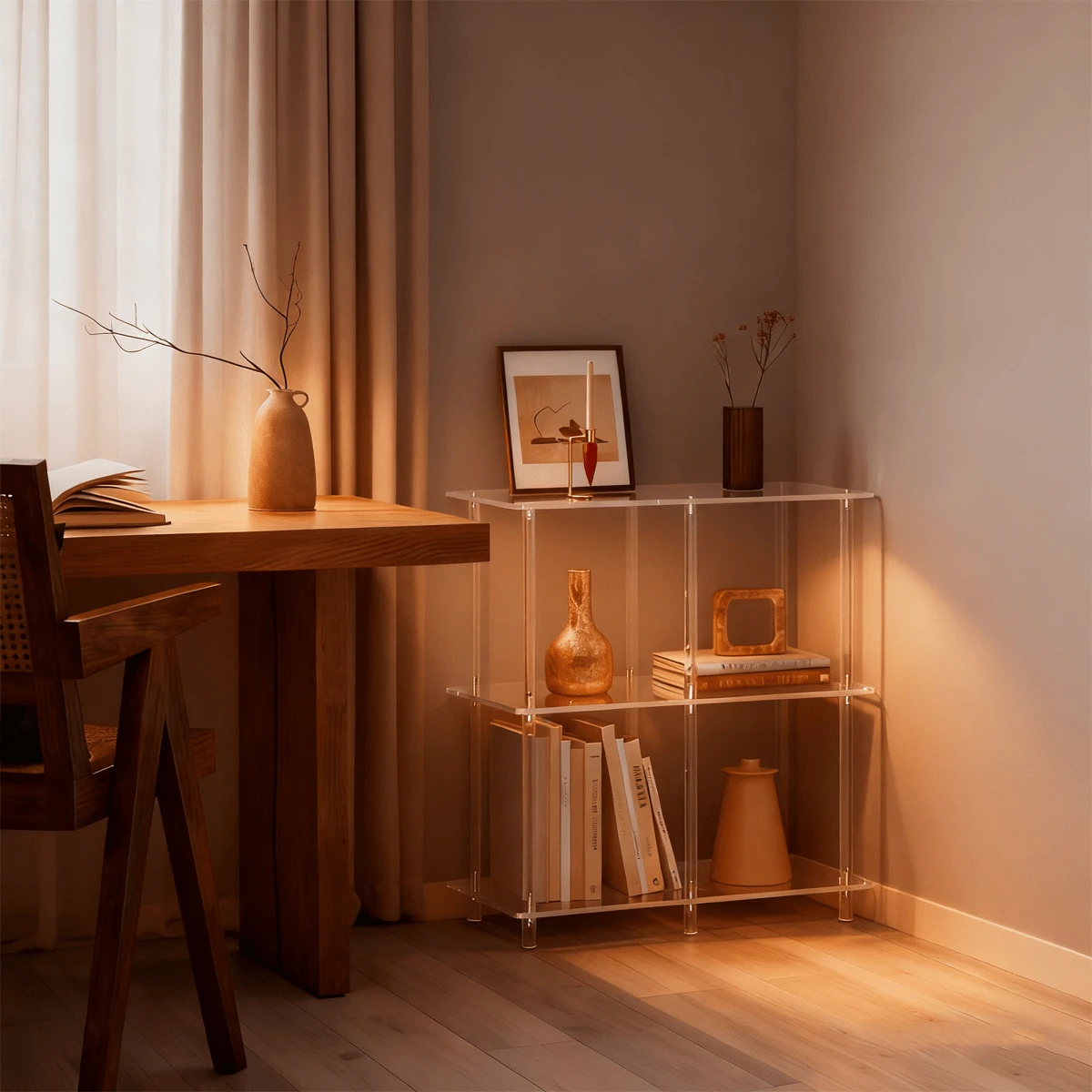 4 Cube Acrylic Bookshelf, 3-Tier Transparent Low Bookcase, Suitable For Small Spaces, Home Office, Living Room, Bedroom, Modern Style, Easy To Assemble