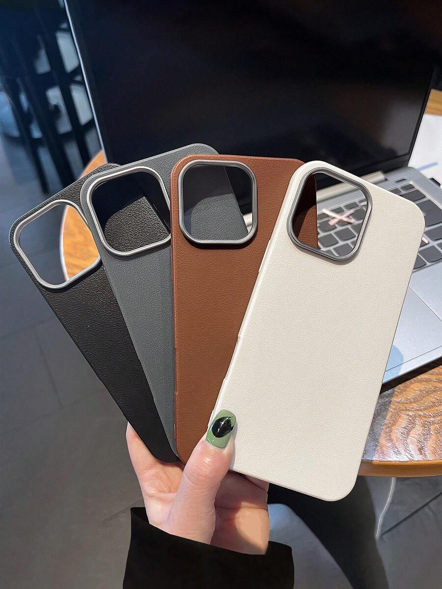 4-Pack Luxury Leather Texture Phone Cases, Compatible With IPhone & Galaxy, Black, Grey, Brown, Beige