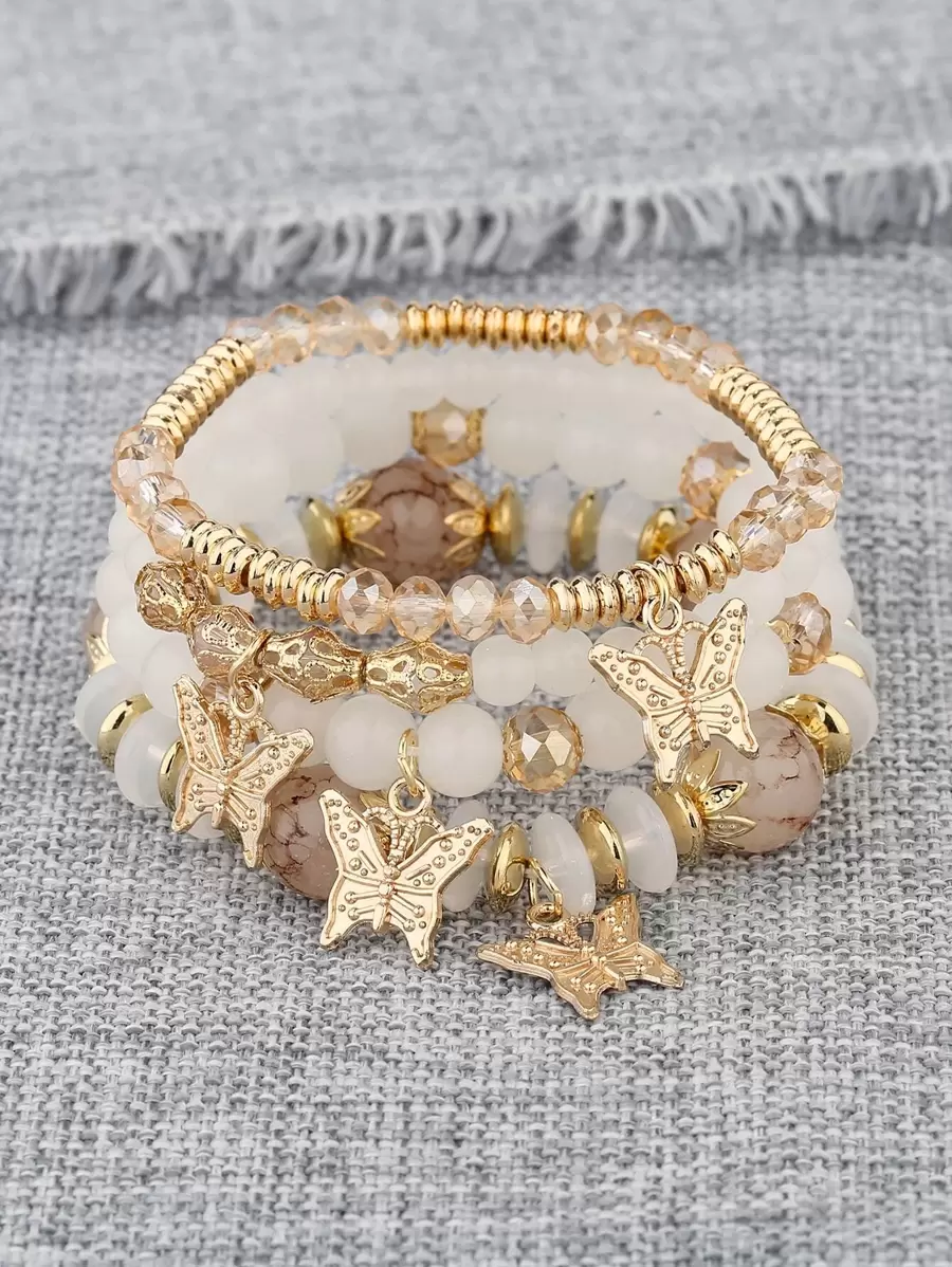 4pcs Butterfly Charm Beaded Bracelet
