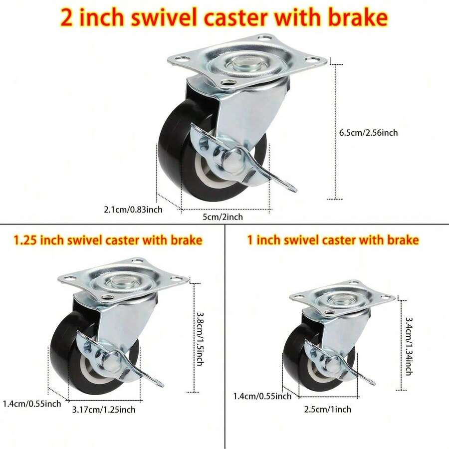 4pcs Heavy Duty Swivel Casters, Suitable For DIY Manufacturing, Durable Metal Structure, Ideal For Office Cabinets, Workbenches, Storage Boxes And Sliding Doors, Flower Stand Table Mobile Wheel Roller Wheel Mute Ply Pulley, A Set Of 4 1/1.25/2-Inch PVC Furniture Casters, Wear-Resistant, Silent, Universal Heavy-Duty Hand Push Wheels, 360 Degree Rotating Casters