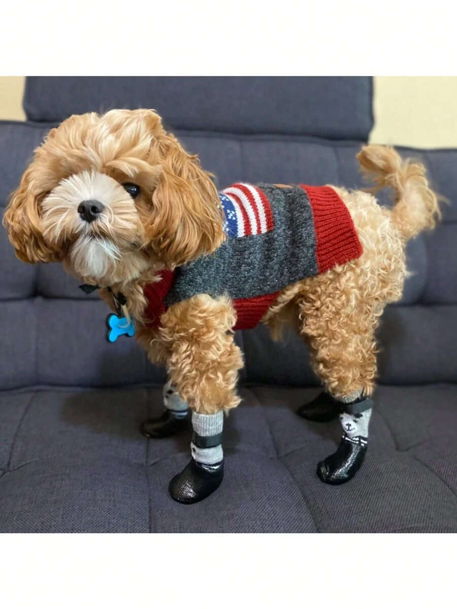 4pcs/Set Dog Cat Waterproof Shoes Socks, Pet Winter Warm Boots (Random Pattern), Rain Snow Dog Booties For Small And Medium Dog Anti-Slip, Paw Protection, Anti-Dirt Puppy Shoes