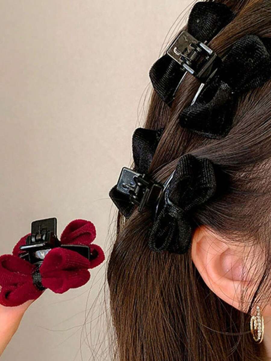 4pcs Women's Plush Sweet And Cute Black Bow Hair Clips And Claws, Perfect For Daily Basic High Ponytail Fixing, Fringes Hairpin Accessories