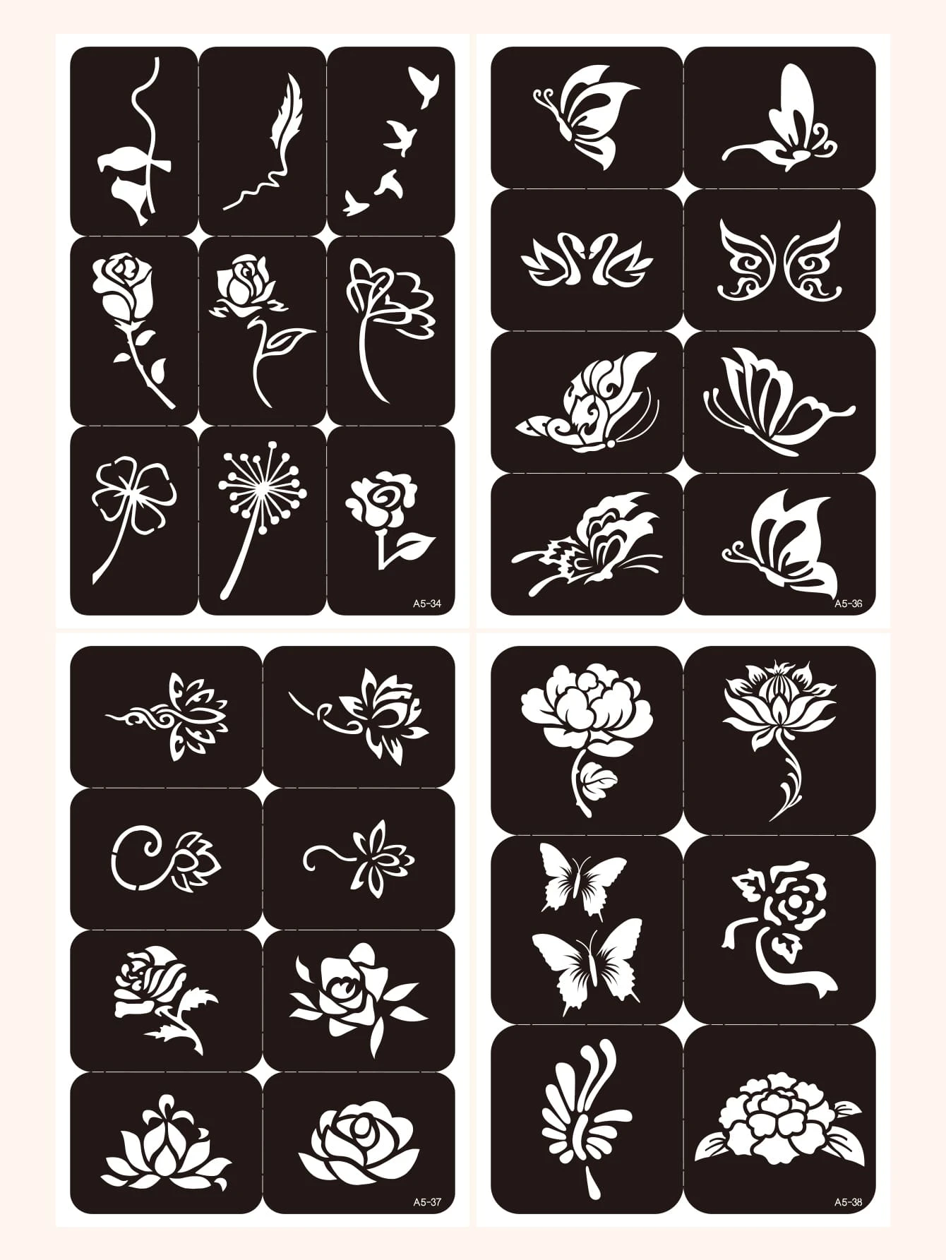 4pcs/pack Flower & Butterfly Pattern Hollow Out Tattoo Stencil Template