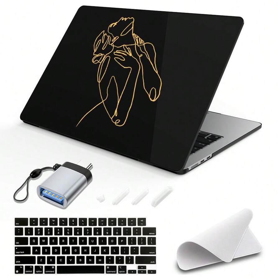 5 In 1 Compatible With Macbook Air M2 13.6 Inch Case 2022 2023 Release Model A2681 With 13.6" Liquid Retina Display, Black Crystal Hard Shell & Polishing Cloth & OTG Adapter & Keyboard Cover, Golden Sexy Beauty
