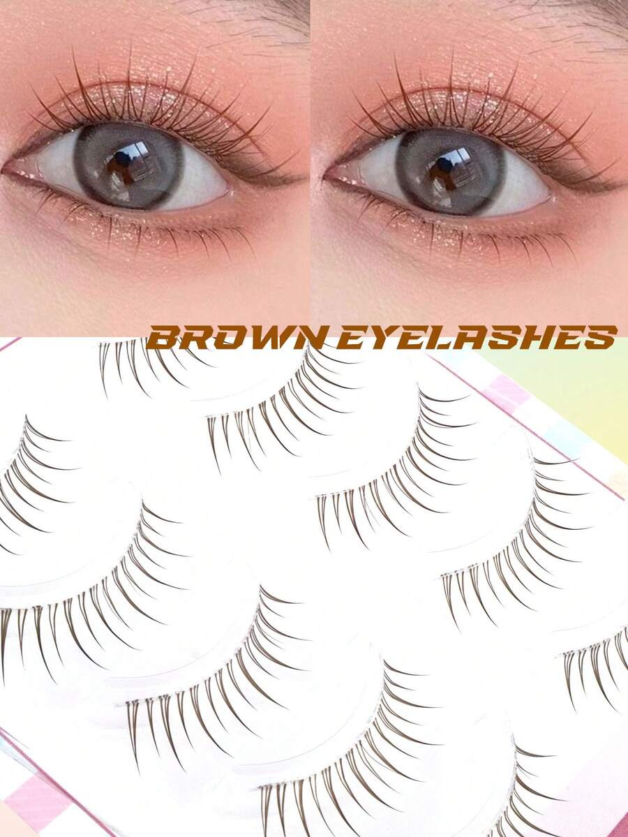 5 Pairs Brown Pointed Flame Transparent Stem Korean Anime Eyelashes, Natural Thin Soft Root Adhesive Fresh Sweet Eye Makeup False Lashes