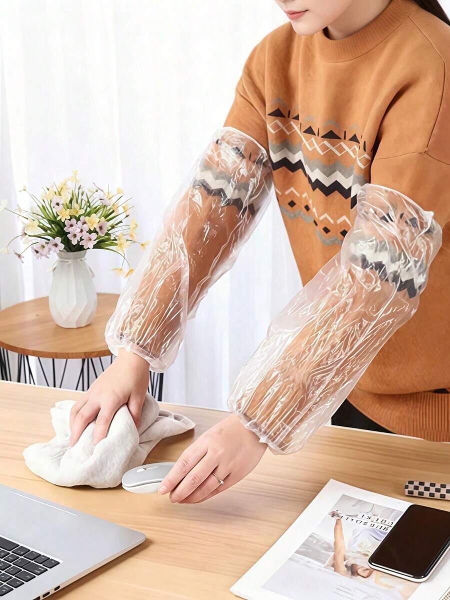 50/100/200pcs Disposable Plastic Sleeve Covers, Household Cleaning Protective Sleeves, Waterproof Dustproof Arm Sleeves, Housework Arm Protection Covers