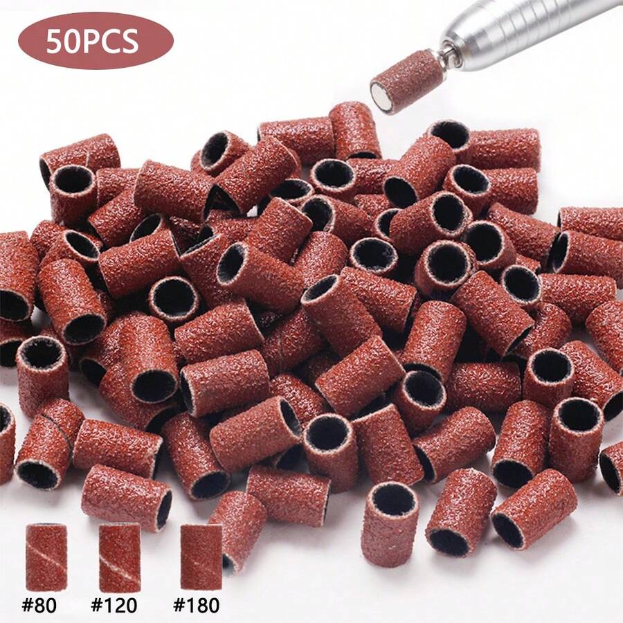 50pcs 80#, 120#, 180# Brown Sandpaper Bands + Electric Nail Drill Bits, Nail Clipper