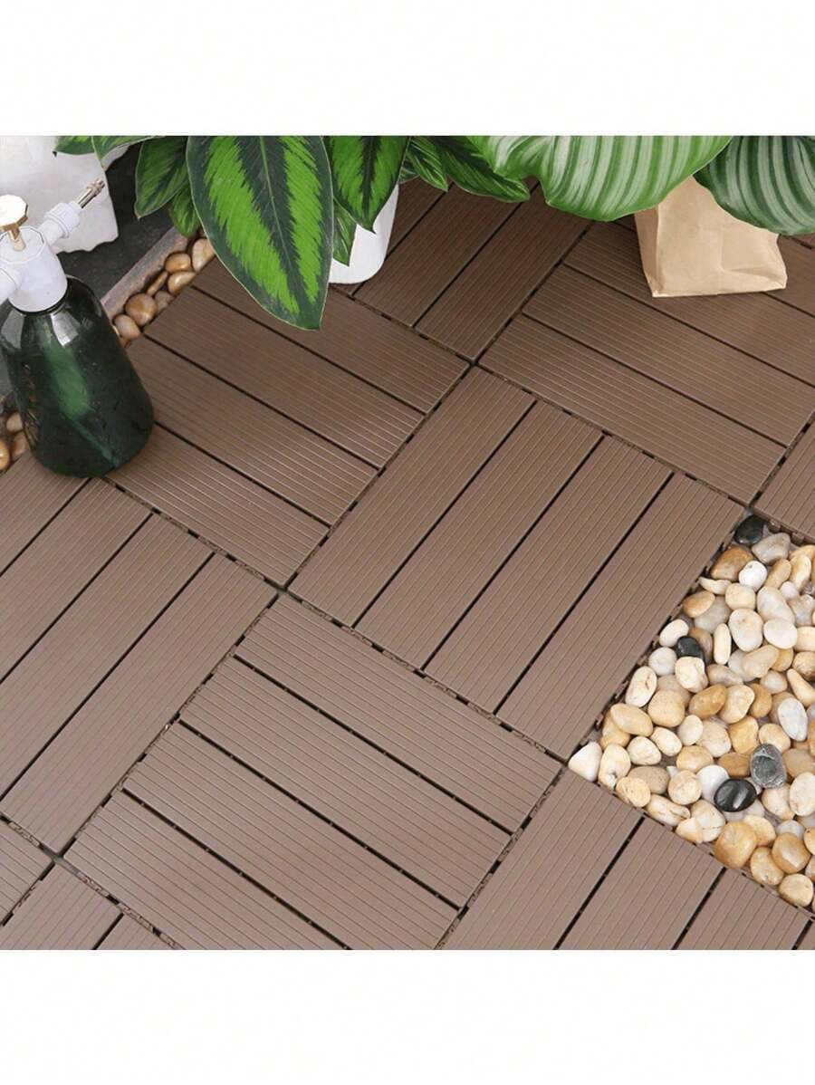 5pcs/10pcs/15pcs PVC Plastic Self-Assembling Balcony Terrace Garden Outdoor Waterproof Anti-Corrosion Floor Tiles, Yard Outdoor Waterproof Ceramic Tiles