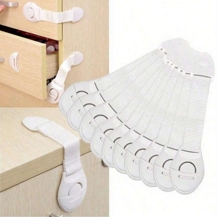 5pcs White Child Safety Cabinet Locks, Baby Proofing Drawer Door Cabinet Locks, Plastic Door Locks (The Product May Have Slight Color Difference Due To Photography, Lighting, Display, Etc. Please Refer To The Actual Product.)