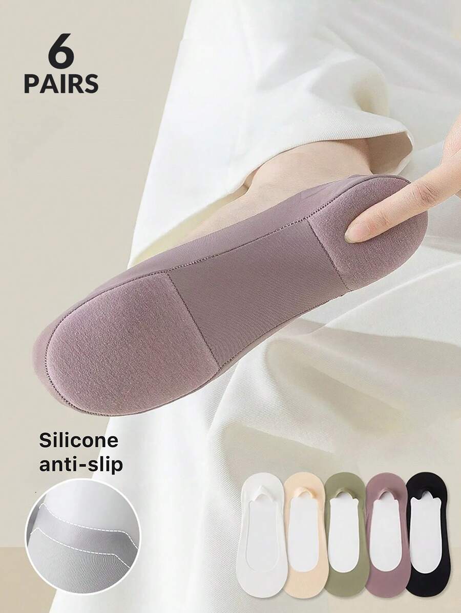 6 Pairs Women's Multi-Color Invisible Socks, Spring/Summer, Silky, Soft Foam Cushion Shock Absorbing, Non-Slip, Thin & Breathable, For Home, Commute, Leisure, Vacation, Holiday Gift (No Paper Card)