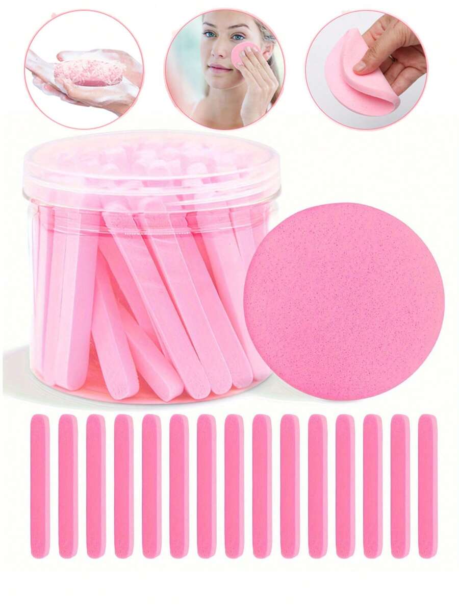 • 60 Pieces Of Compressed Facial Cleansing Sponge, Natural Cellulose Beauty SPA Sponge, Suitable For Beauty Care, Facial Cleansing, Exfoliation Masks And Makeup Removal - Pink - View 8