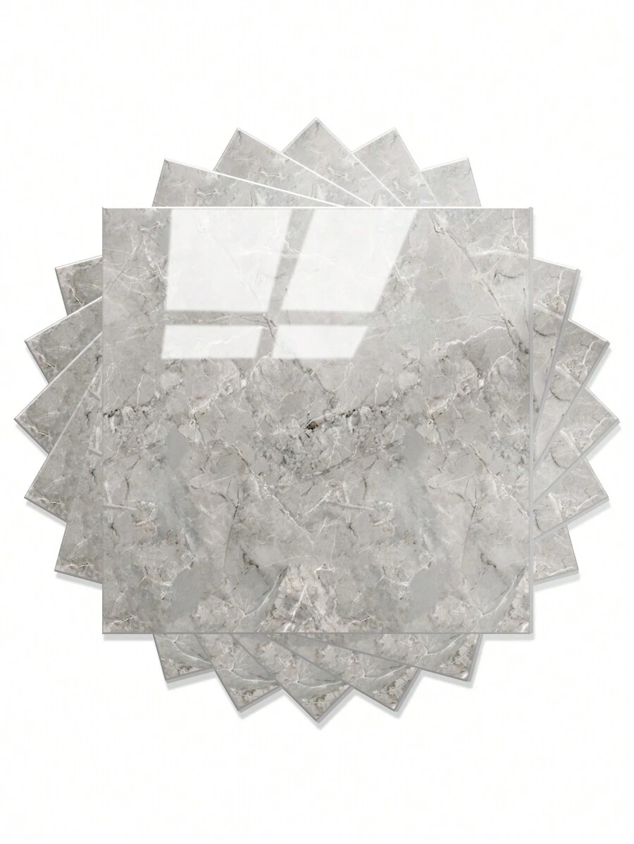 6pcs 0.54m2 Gray Glossy Marble Pattern Imitation Tile Wall Stickers Waterproof And Moisture-proof Wall Renovation Wallpaper 3d Self-adhesive Ugly Wall Panel Bathroom Bathroom Stickers