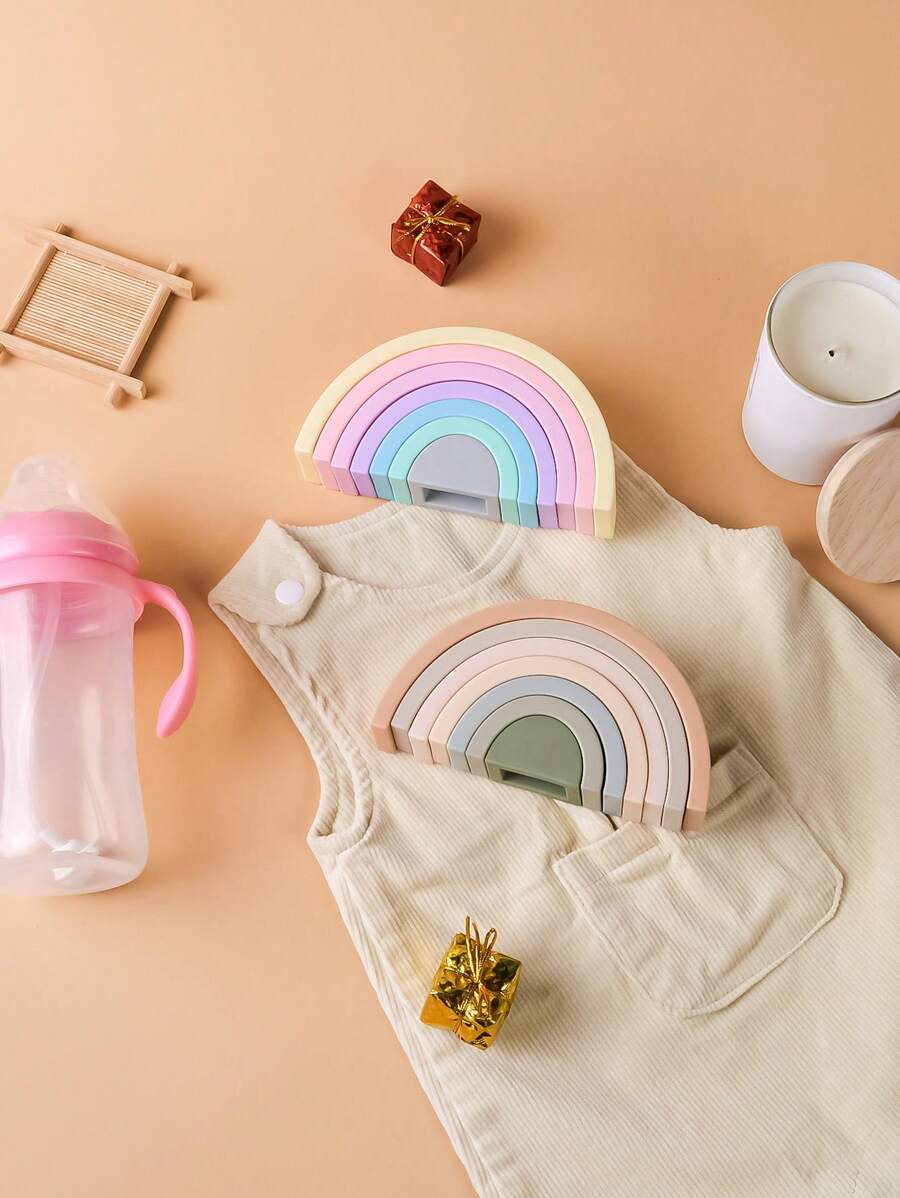 7Pcs/Set Silicone Rainbow Stacking Toy, Color Sorting Stacking Game Rainbow Stacker Shape Matching Learning Montessori Toys For Baby Early Development Toy Gifts
