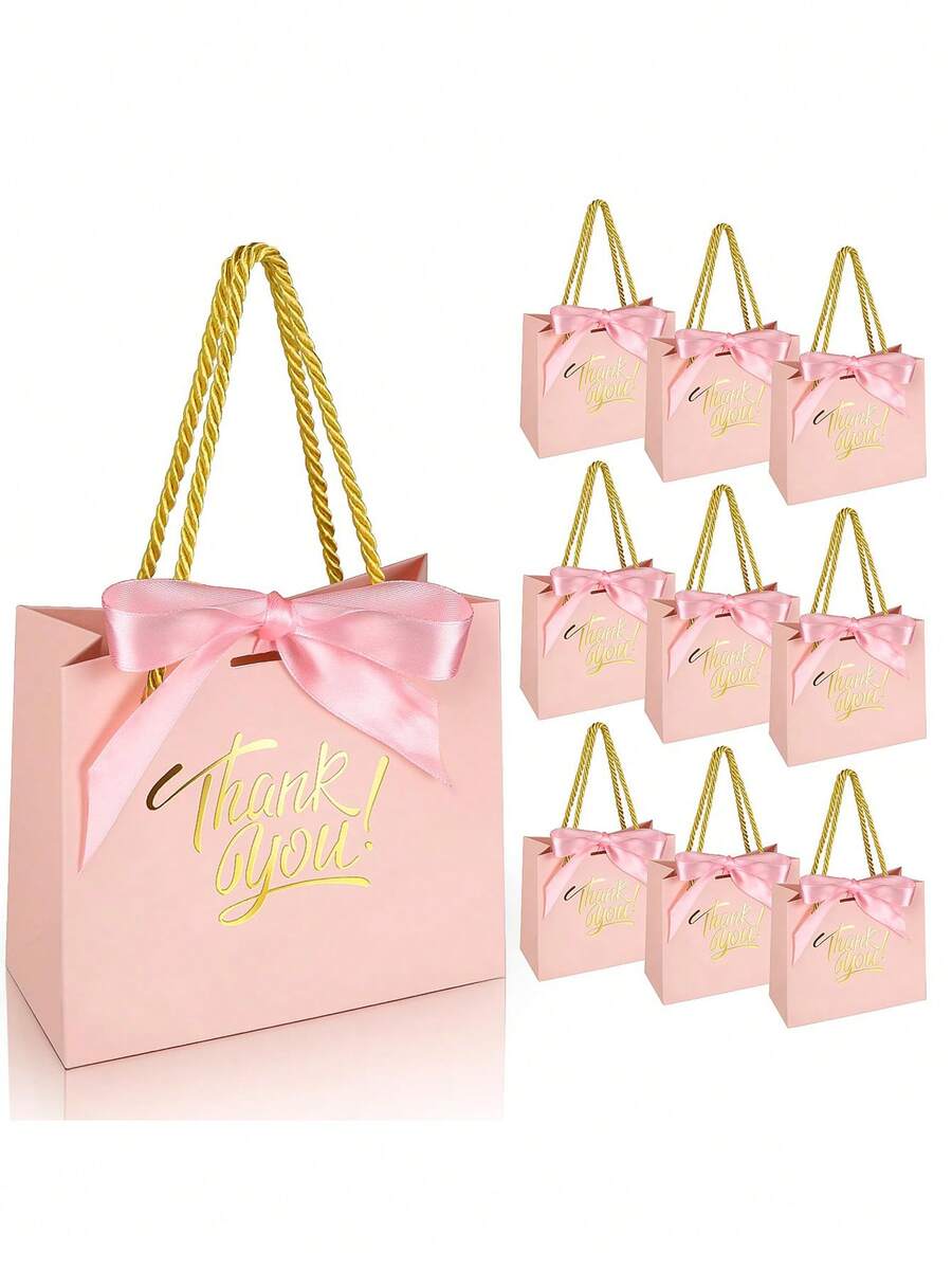 8pcs-Handle-Attached Thank-You Gift Bags - Pink Mini Gift Bags With Ribbon Mini Paper Candy Bags With Pink Ribbon Perfect For Weddings, Birthday Parties, Baby Showers, And Christening Ceremonies
