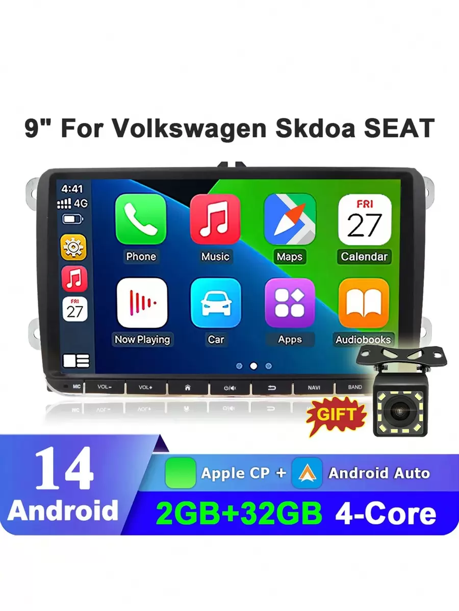 Android 14 9-Inch Car Radio, Wireless Apple Car Play & Android Auto, Fit For Passat B6 B7 CC Tiguan Touran Golf Polo 2 Din Car Multimedia Player Navigation GPS, Hands-Free Calling, Car Stereo Audio IPS Screen, Autoradio, Includes Car Backup Rearview Camera