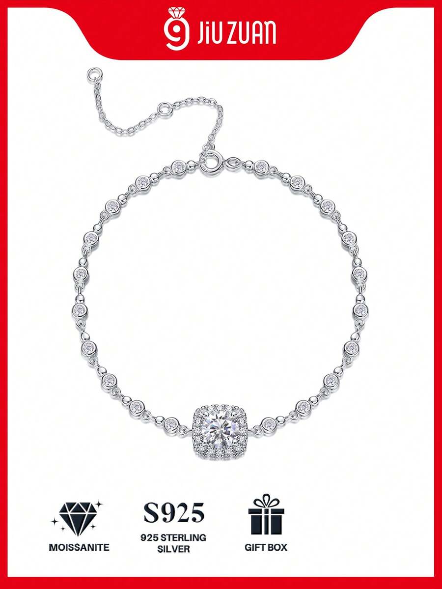 925 Sterling Silver Moissanite Diamond Bracelet For Women, Hypoallergenic, High-End, Suitable For Proposal, Engagement, Wedding, Valentine's Day, Anniversary, Birthday, Party, Daily Wear, Fashionable And Versatile