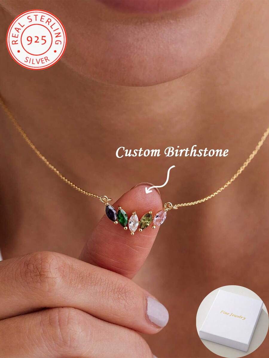 A Bespoke 925 Sterling Silver Olive-Shaped Birthstone Necklace, A Personalised And Exquisite Piece, Customised Birthstone Necklace, Family Gift, Anniversary Present, Birthday Gift, Commemorative Token, Graduation Present, Christmas Gift, A Thoughtful Gift For Her.