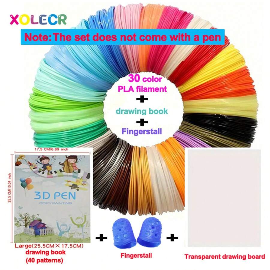 A DIY Drawing Set Suitable For 3D Printing Pens, Including 30 Colors Of PLA Filament + 40 Pattern Albums + Heat-Resistant Finger Covers