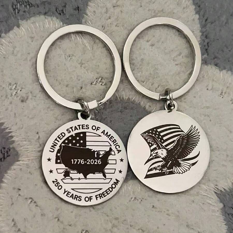 America 250th Anniversary 1776-2026 Commemorative Double-Sided Engraved Keychain - Patriotic Theme, 250 Years Of Freedom, American Eagle Stainless Steel Keyring, Casual, Party, Cute, Street, Elegant, Alloy Anniversary Souvenir