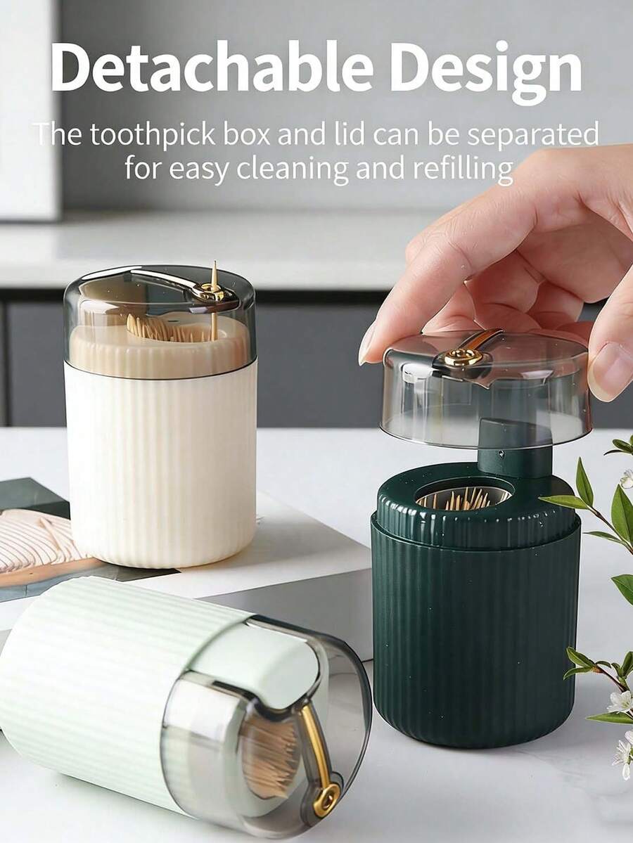 Automatic Pop-Up Toothpick Holder, Luxury Button Toothpick Dispenser, Portable Automatic Toothpick Holder, Home Living Room Toothpick Container, Button Style Automatic Toothpick Storage Box, Suitable For Home, Living Room, Kitchen, Dining Room