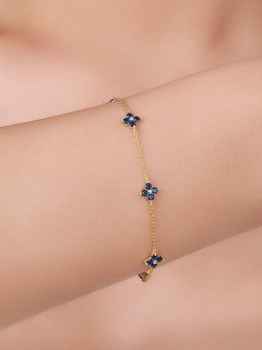 BALMORA 1pc 925 Sterling Silver Elegant Cute Blue Flower Zirconia Chain Bracelet, Suitable For Women's Daily Wear, Friendly Gatherings Or As A Gift