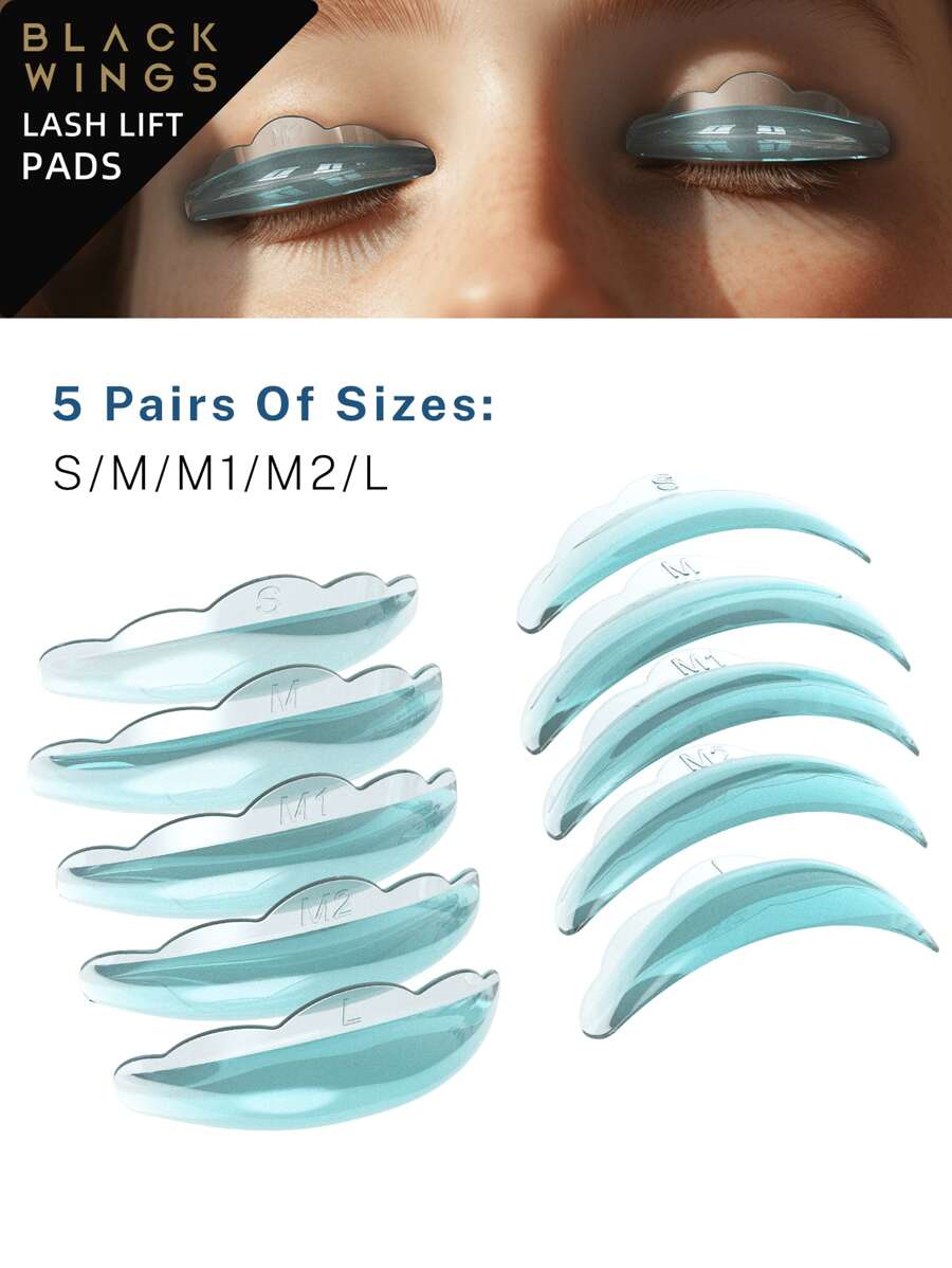 BLACKWINGS 5pairs Transparent Lash Lifting Cushion Pads And Keratin Lash Lifting Molds, Silicone Eyelash Curler, Eyelash Enhancing Tool For Makeup And Beauty, Reusable Eyelash Lifting Pads