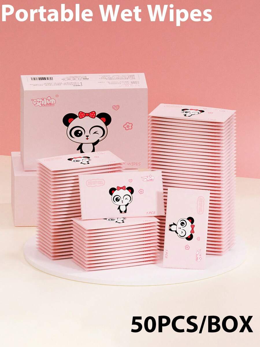 BROS Wet Wipes Pink Disposable 1/25/50pcs Portable Wet Wipes,Compact Portable, Extractable Cleaning Sanitary Wipes, Suitable For Daily Cleaning And Outdoor Camping.Travel Hand And Mouth Cleaning, Mini Portable Wet Wipes For Hand And Oral Cleaning - Non-Woven Outdoor Body Care Wet Wipes, Daily Hygiene Cleaning, Suitable For Men And Women