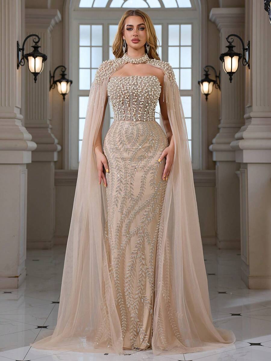 Beaded, Sequin Embroidered Lace Shawl With Tie Back, Elegant & Sexy Evening Dress/Suitable For Cocktail Party, Gathering, Wedding