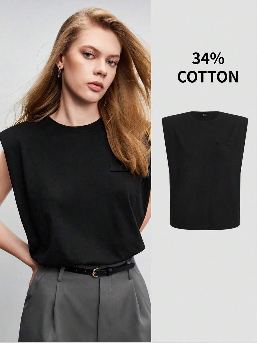 BizChic Women's Black Cotton Padded Shoulder Casual Vest Top, Loose Fit, Suitable For Urban Commute, Office, Business Casual, Party, And Other Occasions
