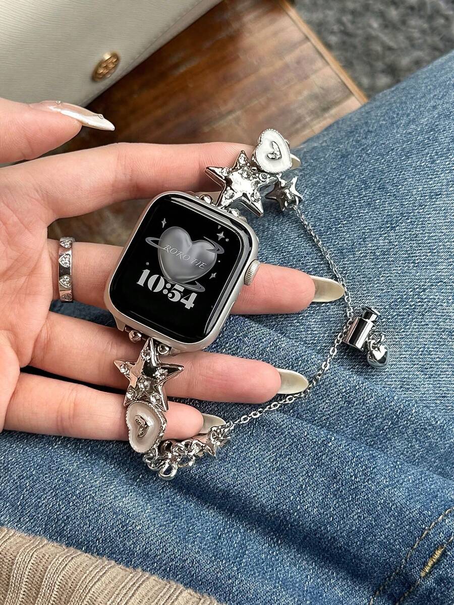 Bohemian Heart & Star Compatible With Apple Watch Band 38mm 40mm 41mm 42mm 44mm 45mm 46mm 49mm, Handmade Fashionable Replacement Strap Compatible With Apple Watch Ultra1/2/3 SE Series 11 10 9 8 7 6 5 4 3 2 1 Women Wristwatch(Only Watch Band)