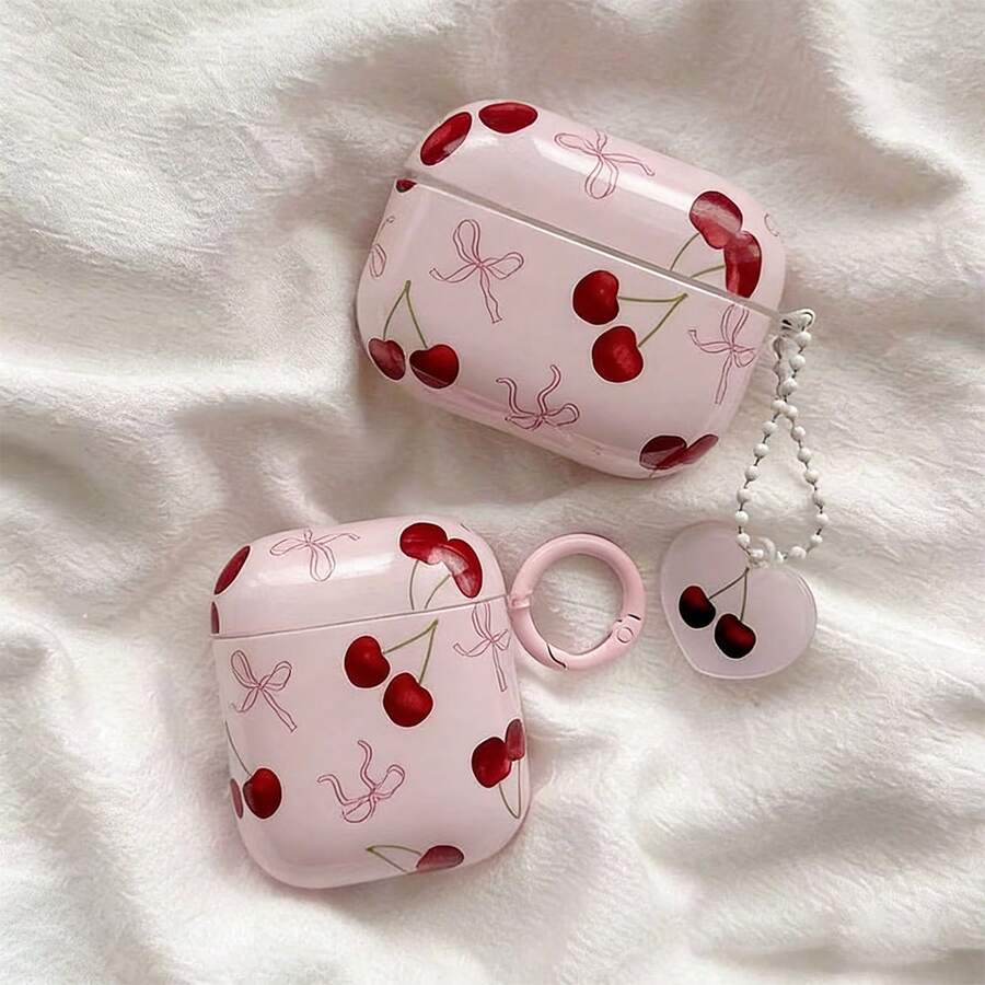 Cherry Pink Bow Earphone Case, Compatible With Apple Earphones Including 4, Pro 2, IPod Earphones, 3 Etc., Can Also Be Used As Smartphone Protective Case, Power Bank Protective Case, Earphone Cover, Suitable As Valentine's Day Gift, Women's Gift And Birthday Gift