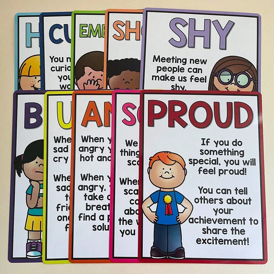 Children's Emotional Cognition Poster, English Emotional Vocabulary Enlightenment A4 Poster, Preschool Social Emotional Learning Tool, Emotional Management Cognition Poster, Children's Psychological Emotional Enlightenment Learning Cards