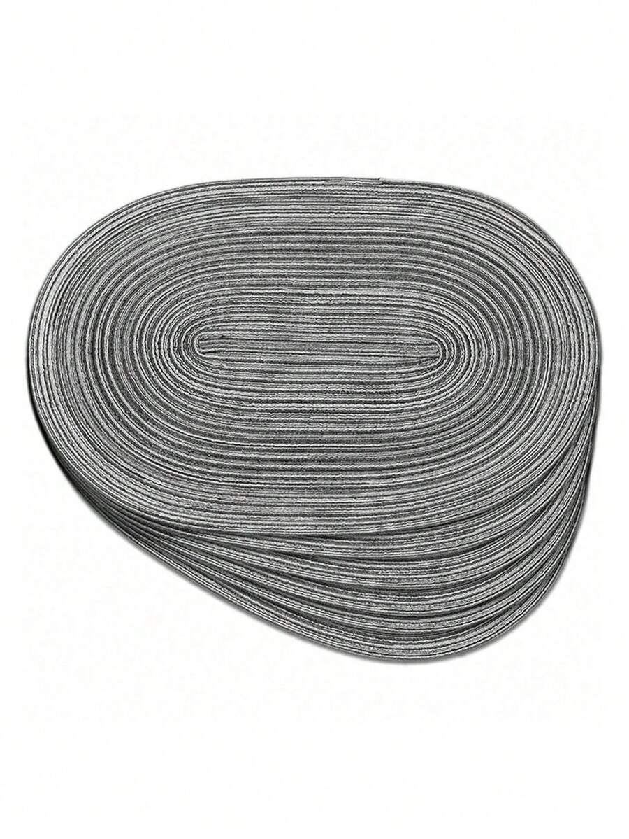 Cotton Yarn Woven Oval Placemats 12x18 Inch, Dining Table Oval Napkins, Natural Woven Heat Resistant Table Mats For Family Gatherings, Wedding Parties (Gray)