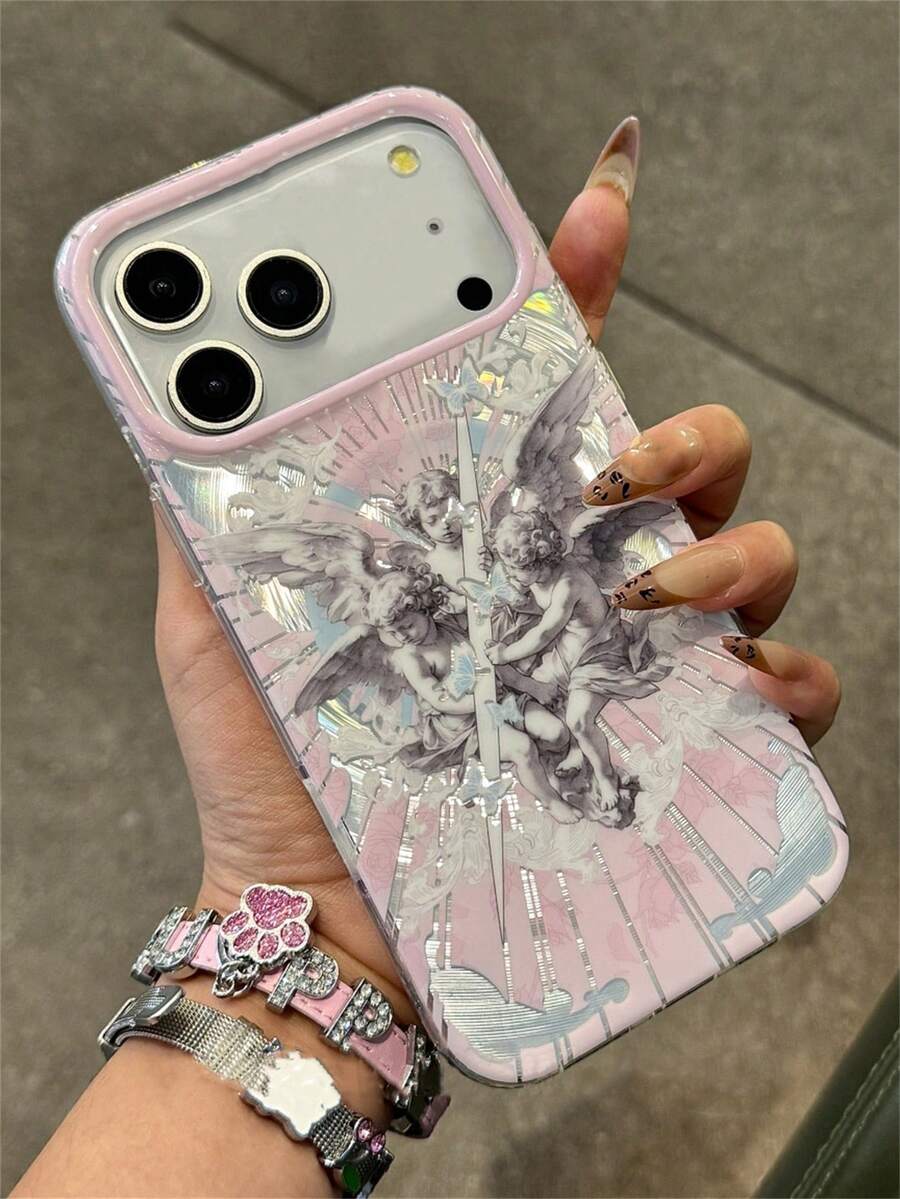 Creative Stylish Angel Cupid Butterfly Rose Flower Phone Case Compatible With IPhone 17 Pro Max 16Promax 17 Pro 16 17 15 14 Plus 17Air 13 12 Pro Max 11 Cute Aurora Laser Gradient Vortex Pattern Soft Back Cover Lolita Style Shell