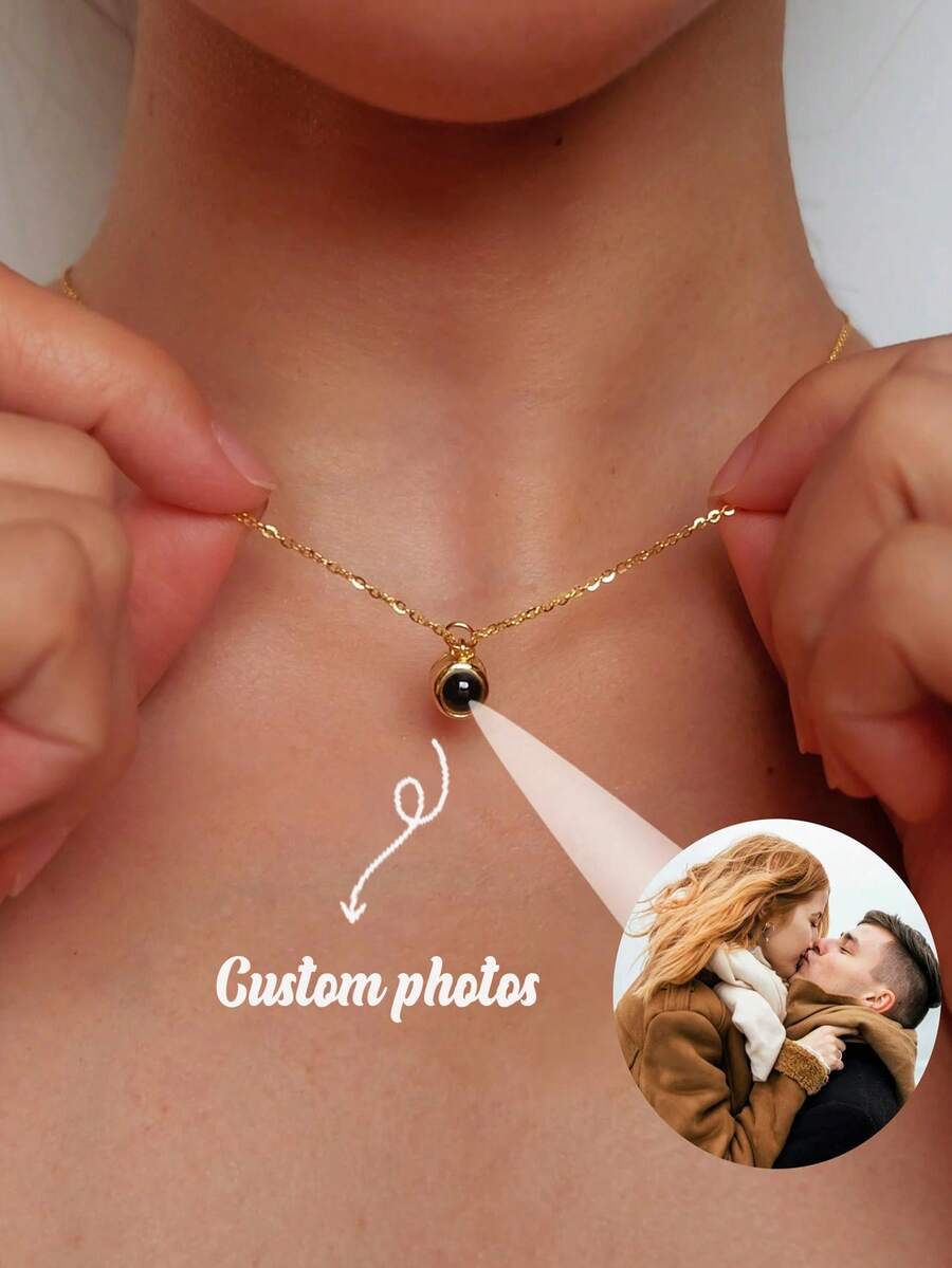 Customized Photo Projection Necklace, Stainless Steel Personalized Memorial Jewelry With Embedded Photo, Elegant & Minimalist Design, Ideal Gift For Girlfriend, Wife, Best Friend, Suitable For Daily Wear, Birthday, Anniversary, Party, Graduation, Wedding, Valentine's Day, Mother's Day, New Year, Christmas