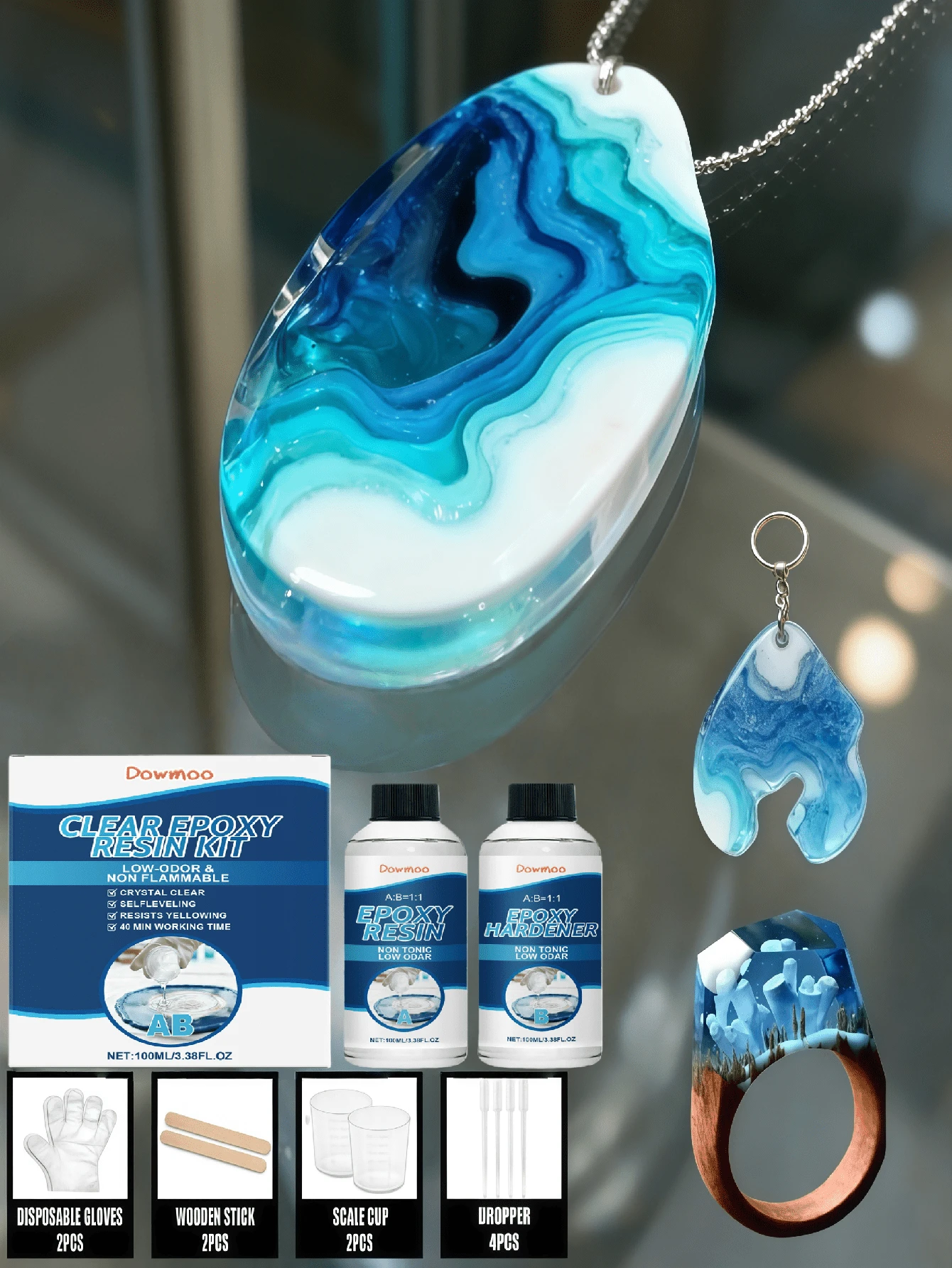 DOWMOO DIY Transparent Epoxy Resin AB Kit, Handmade DIY Jewelry, Odorless Quick-Drying Solidified Crystal Resin Glue, Suitable For Various Handmade Jewelry, Accessories, And Decorations, Smooth Surface With Excellent Transparency And Non-Yellowing After Solidification.