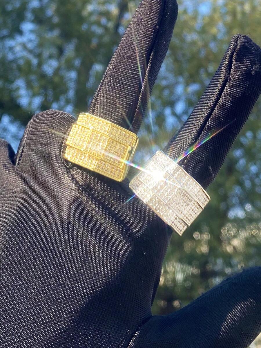 DUBSS 1 Piece Iced Out Asymmetric Men Ring Cubic Zirconia 5A Plated Hip Hop Jewelry