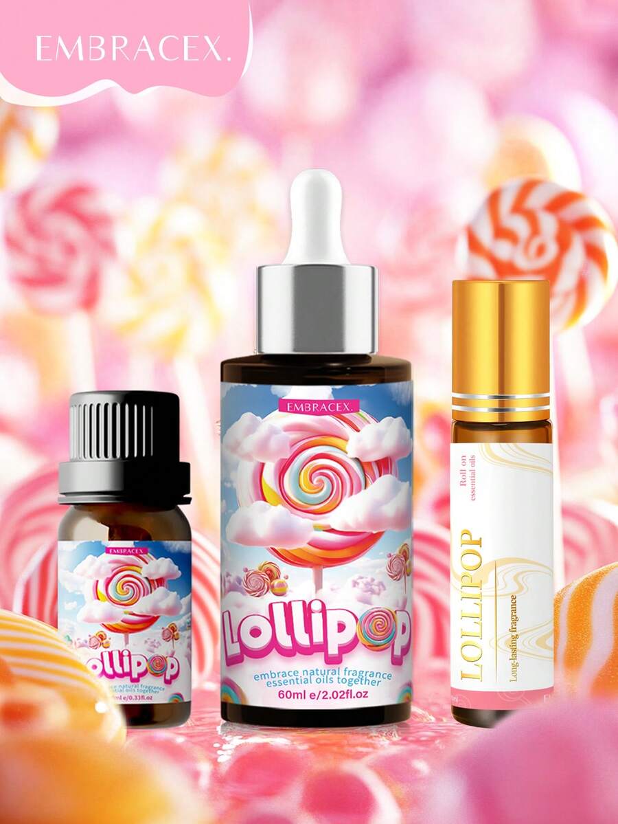 EMBRACEX. 3pcs/2pcs/1PC 10ml+60ml Lollipop Essential Oil Lollipop Roller Essential Oils Fragrance Essential Oils Sweet Long Lasting Oils Aromatherapy Oils Car Aromatherapy Lollipop At Home Or On-The-Go,Suitable For Humidifiers, Aroma Diffusers, Diffuser Wood,Reed Diffuser Oils Gift