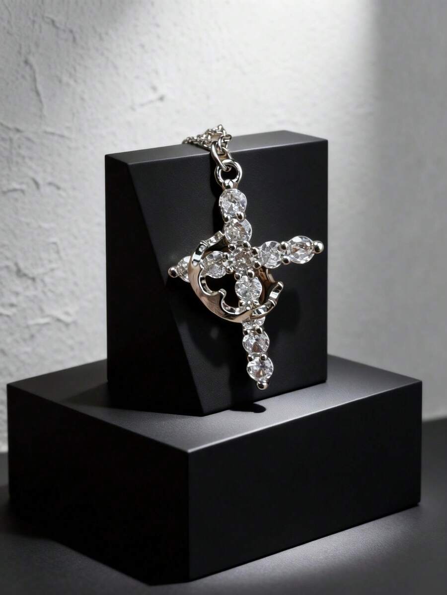 Elegant Cross With Crown Detail Necklace - Women's Delicate CZ Embellished Accessory