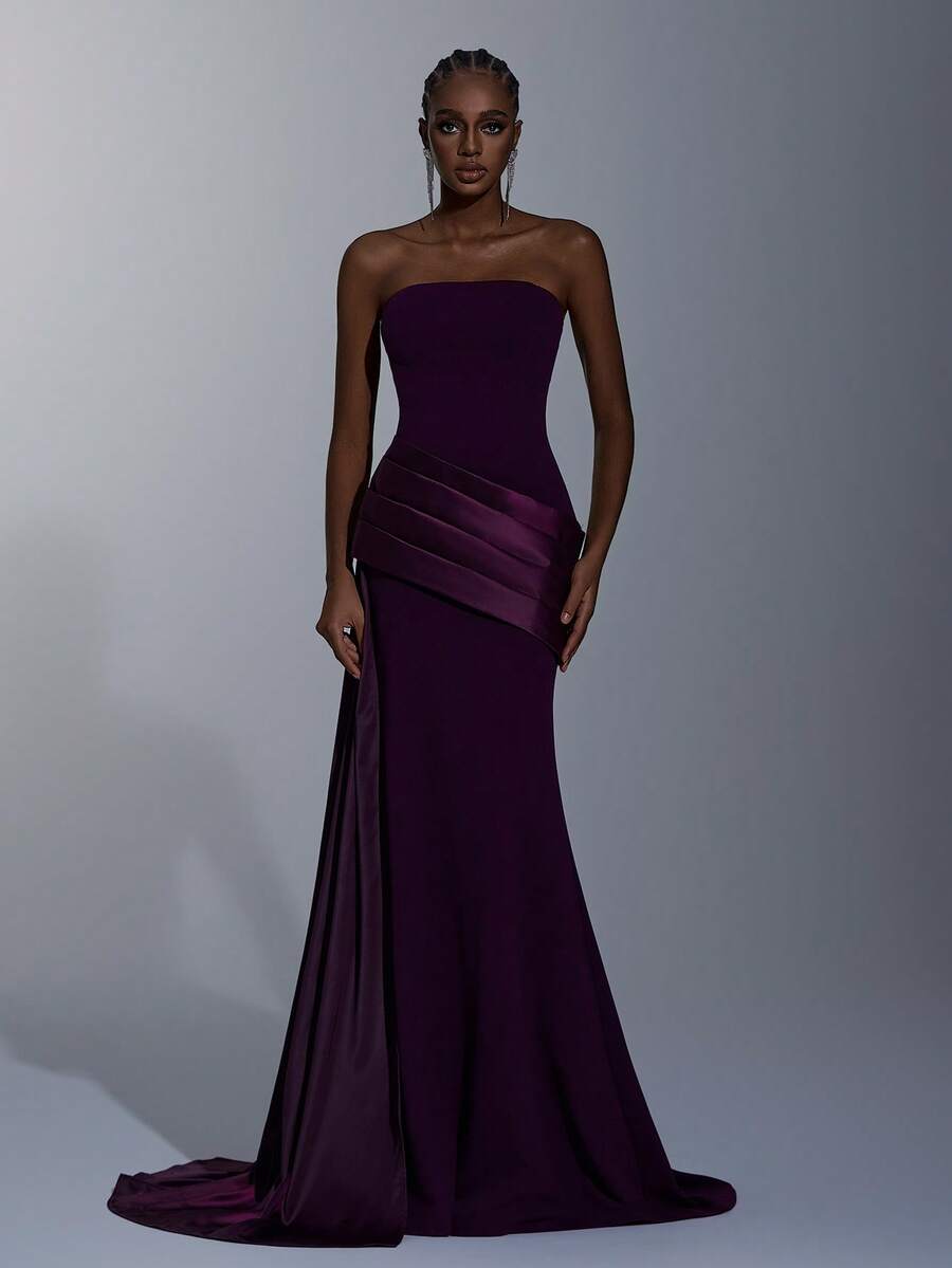 Elitara Elegant, Romantic, Fashionable, Minimalist, Deep Purple, Stretchy Fabric, Satin Patchwork, Stylish, Holiday, Vacation, Birthday Party, Wedding Event, Formal Dinner Dress