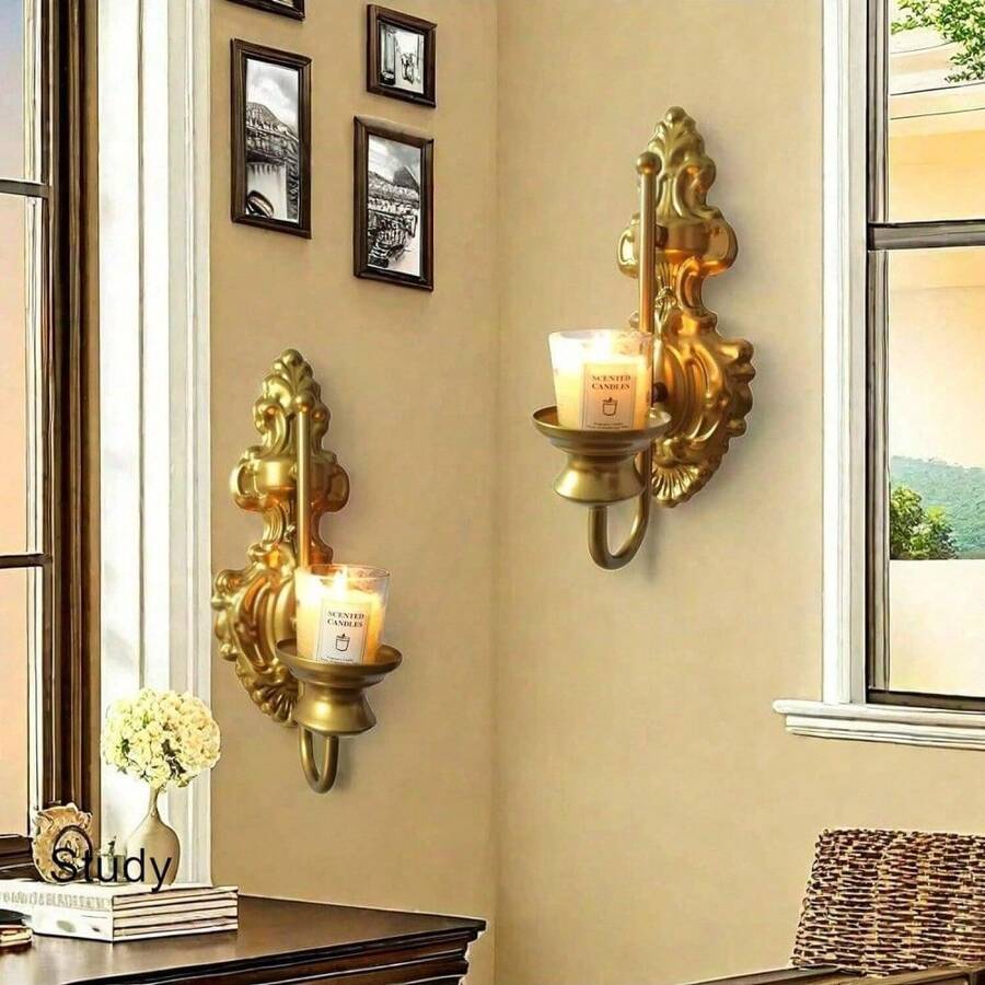 European Retro Wall Mounted Candle Holder, Living Room Bedroom Wall Decor, Gold Iron Candle Cup Decoration