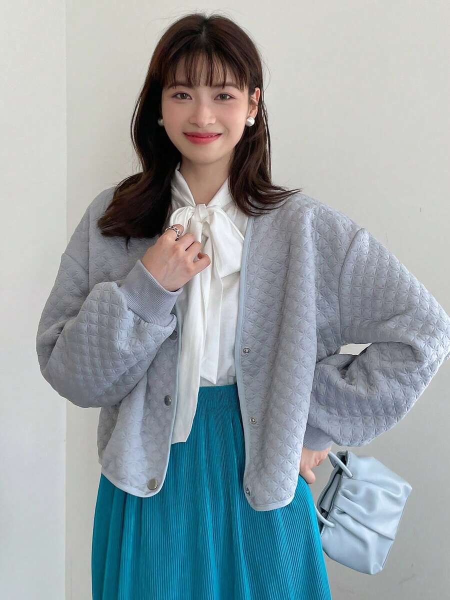 FRIFUL Solid Drop Shoulder Quilted Jacket,Fall Clothes