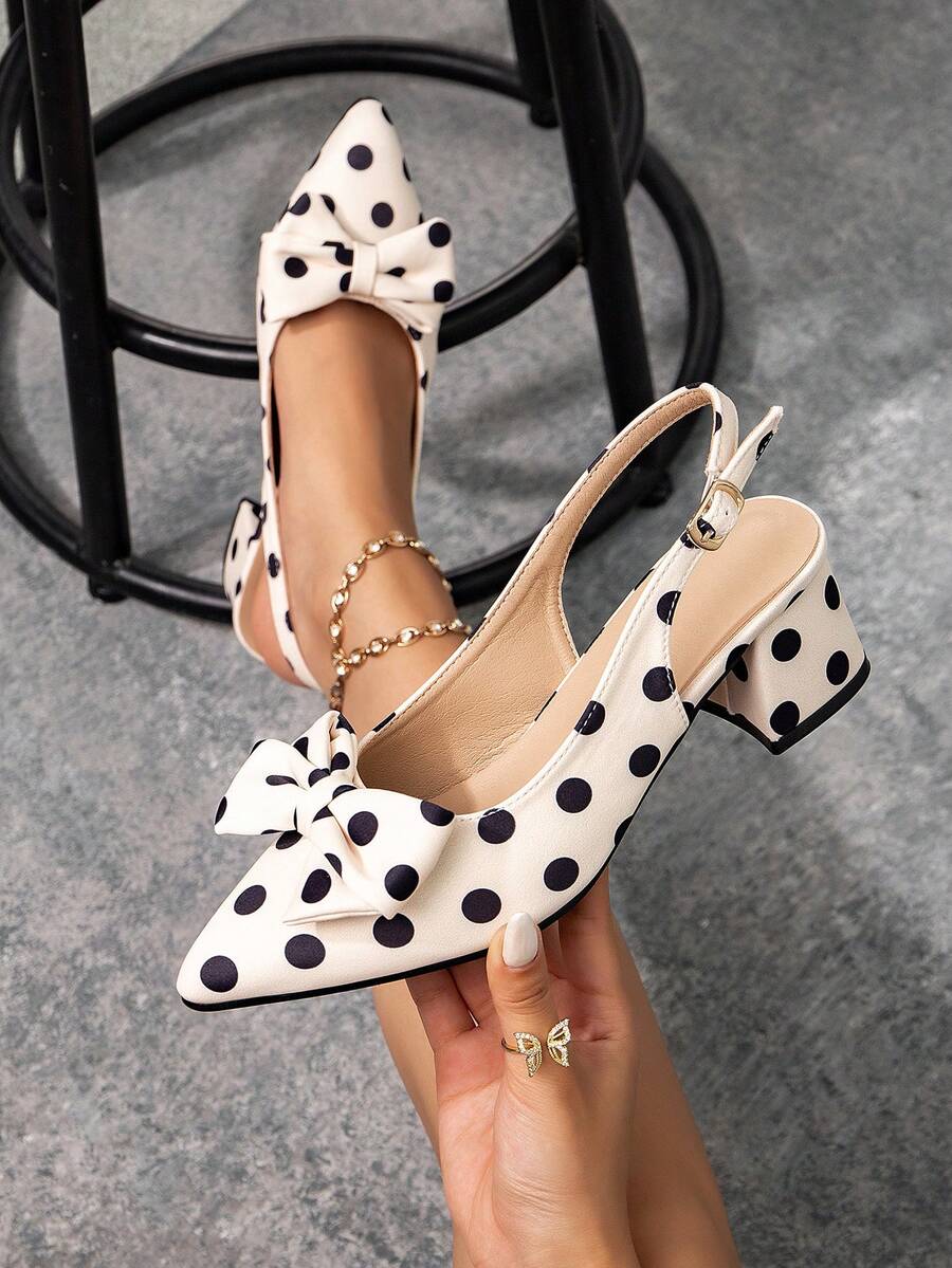 • Fall/Winter 2025 Women's Pointed Toe Bowknot Fashion Polka Dot Slip-On Comfortable Backless Polka Dot Mules Sandals,Elegant,Women Pumps,Elegant - Multicolor - View 5