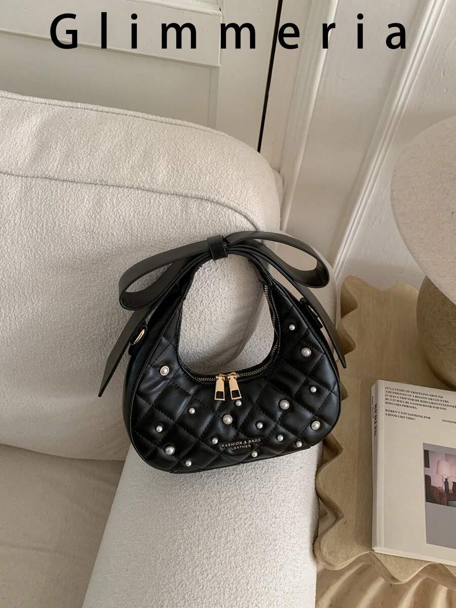Fashionable Bowknot Rhombus Pearl Shoulder Underarm Bag, Handbag & Crossbody Bag For Women