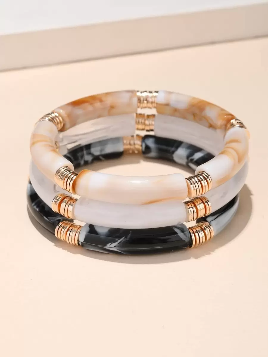 3pcs/Set Bohemian Fish Sheep Multi-Color Bamboo Elastic Bracelet For Women Elastic Resin Tube Bead Cuff Bracelet Bracelet Women Jewelry